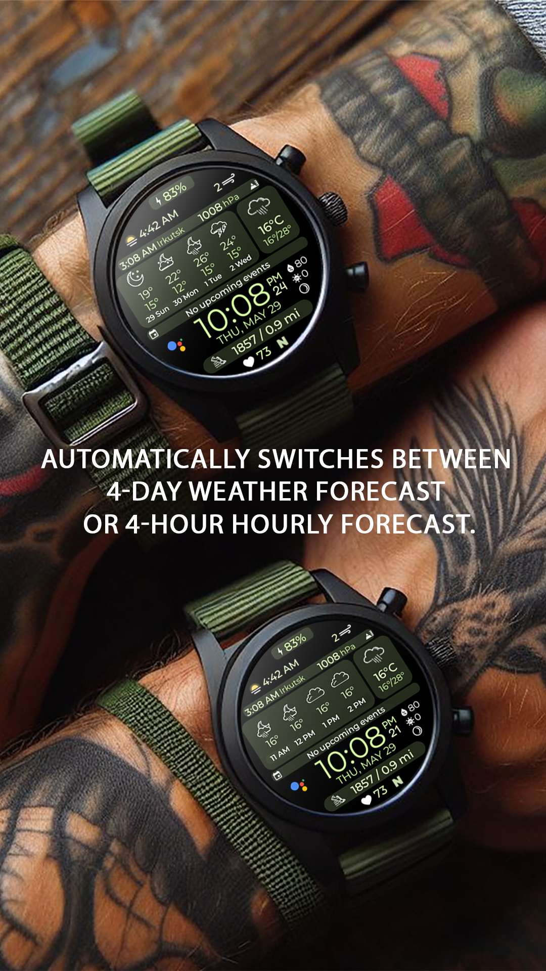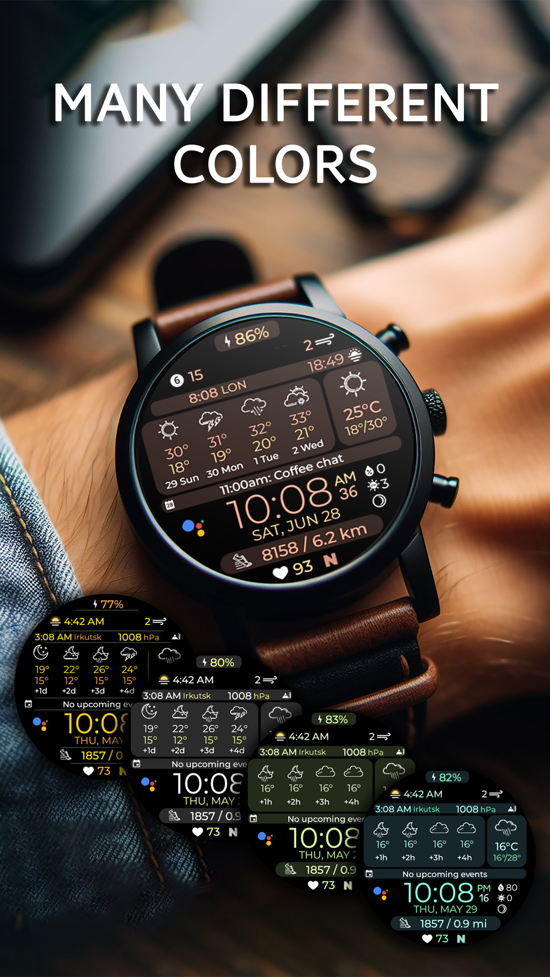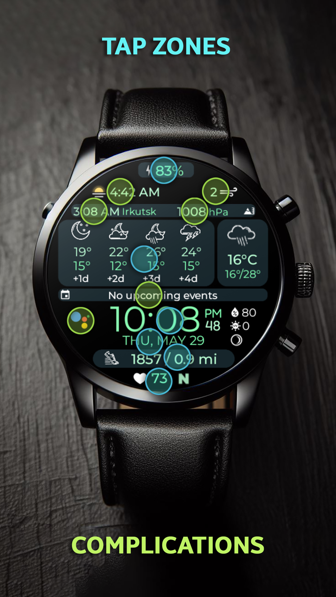 This smart and fully customizable **watch face** is designed for those who value information, style, and convenience. At a glance, you’ll get real-time weather data, upcoming events, health insights, and much more — all with powerful personalization options.
