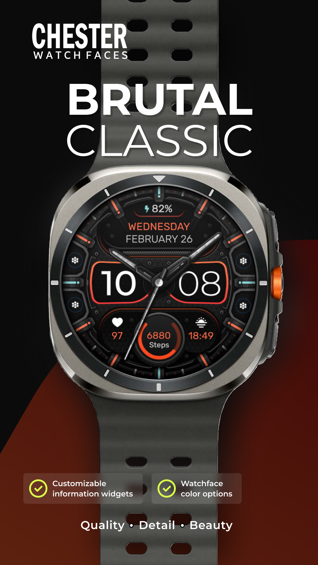 Chester Brutal Classic is the perfect choice for users who need a stylish, powerful, and convenient watch face for daily use and an active lifestyle.