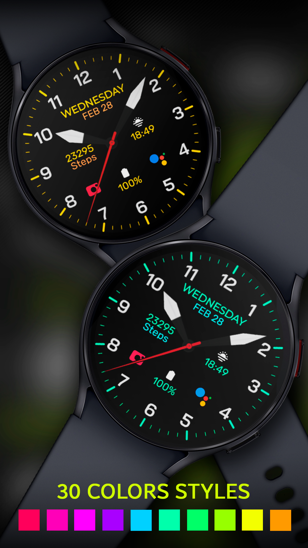 Compatible with all Wear OS API 30+ devices such as Google Pixel Watch, Samsung Galaxy Watch 6, Galaxy Watch 5, etc.