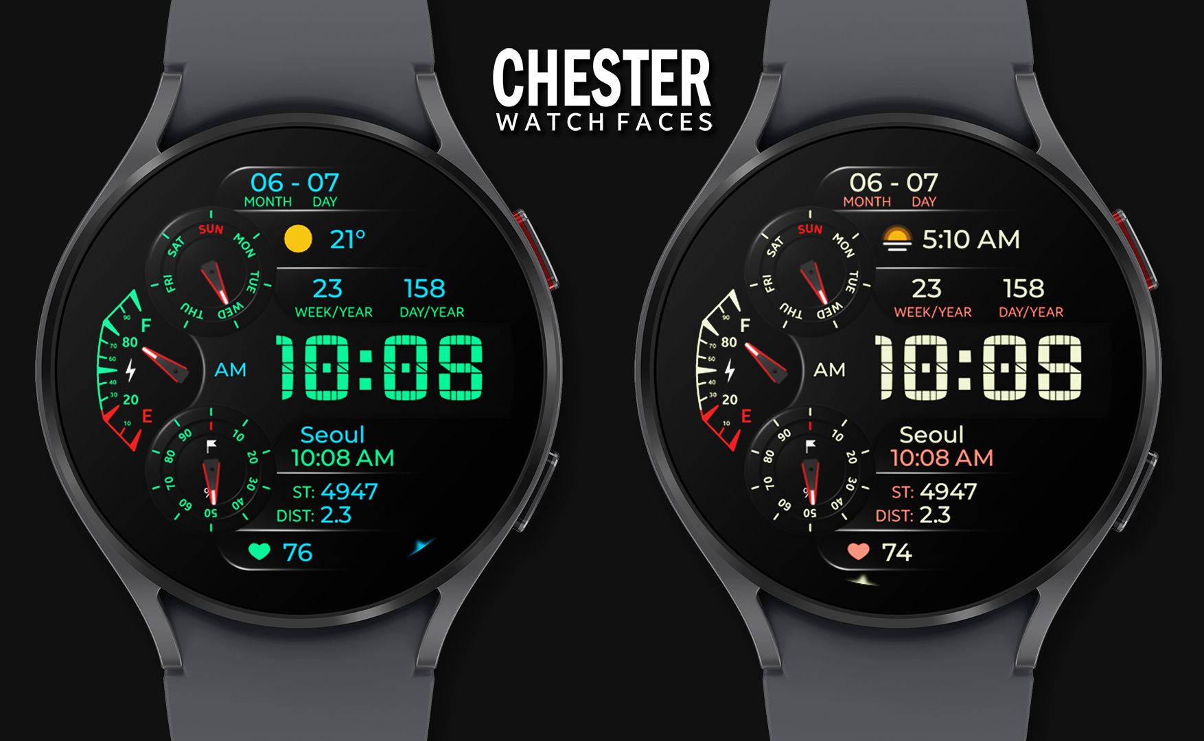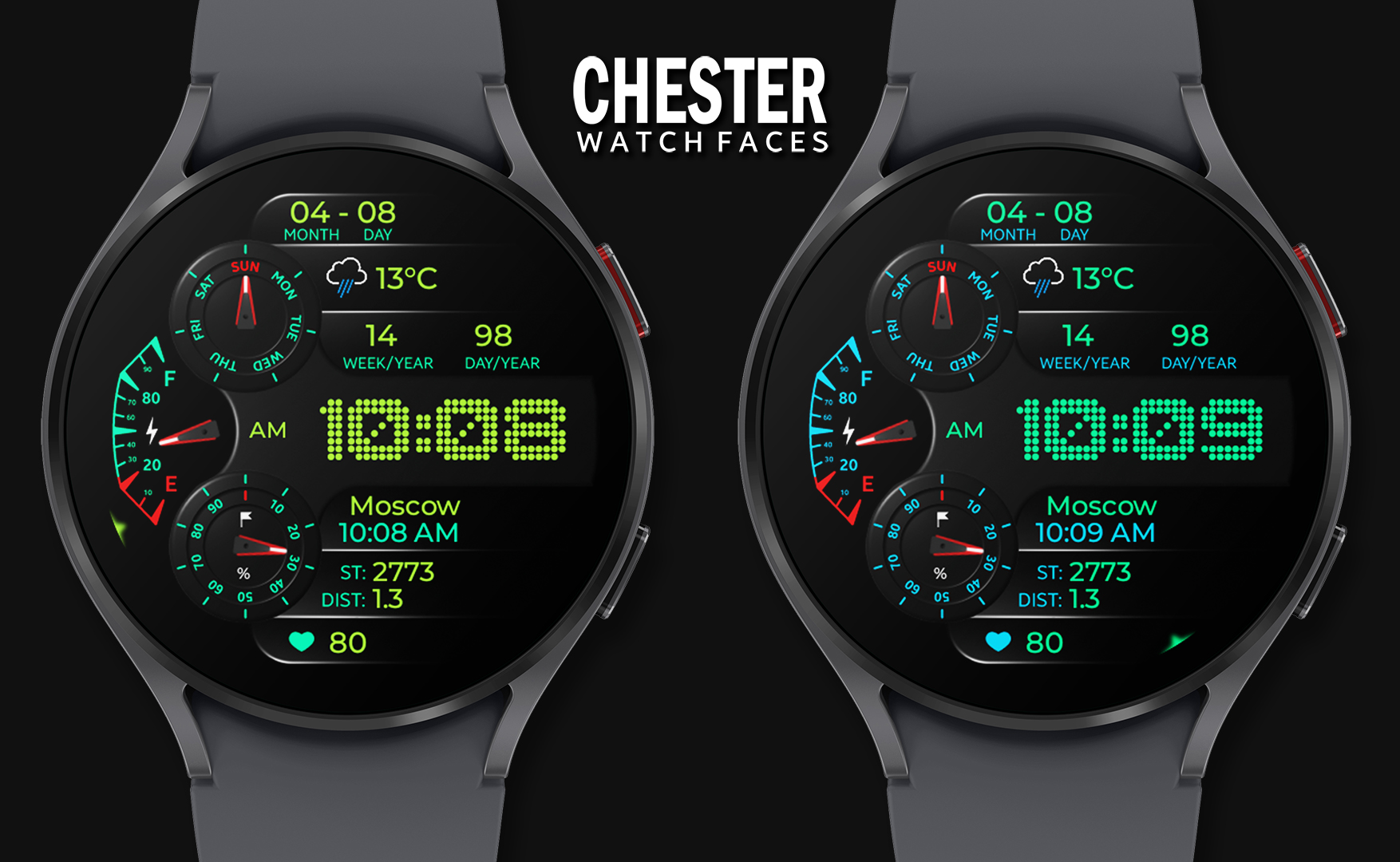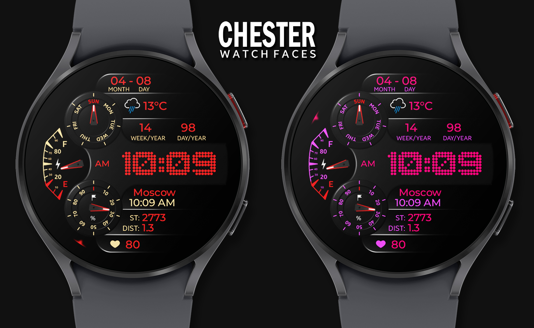 Stylish watch face for Wear OS with lots of information from CHESTER WATCH FACES!
