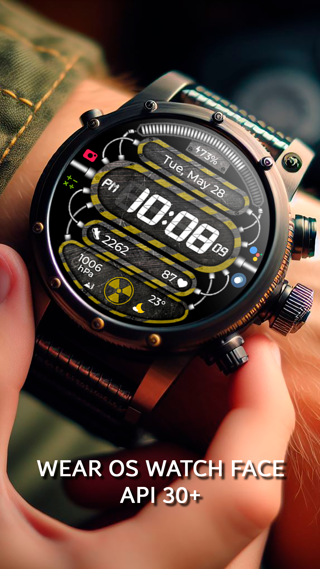 Compatible with all Wear OS API 30+ devices such as Google Pixel Watch, Samsung Galaxy Watch 6, Galaxy Watch 5, etc.