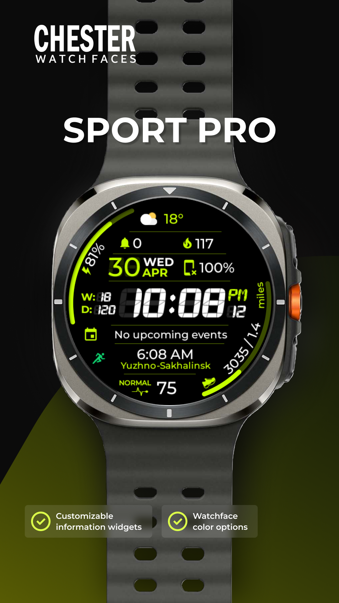 💪 Chester Sport Pro is not just a watch face – it's a complete information dashboard for an active lifestyle, helping you stay productive and stylish at the same time.