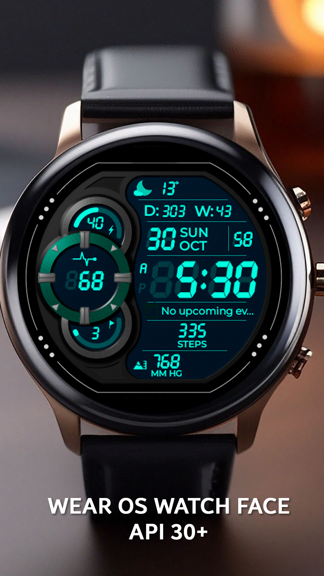 Stylish, digital, with incredible detail watch face for Wear OS.